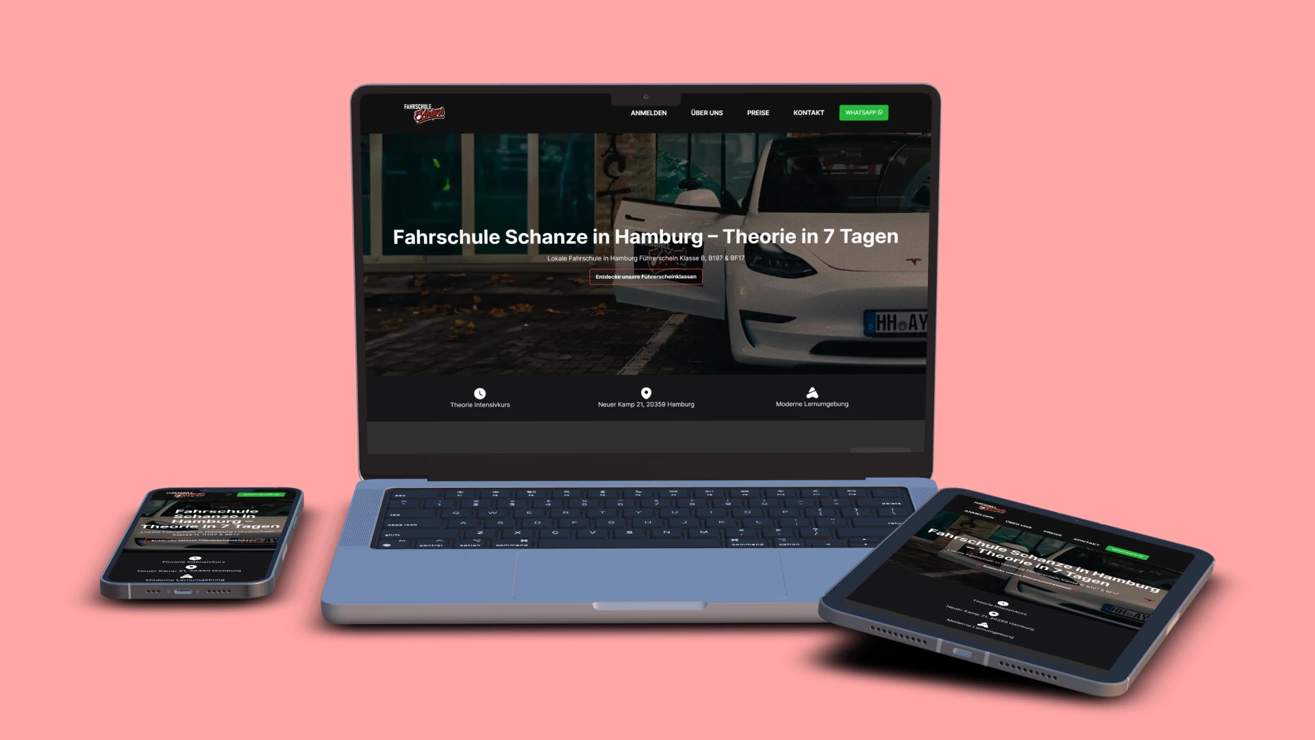 Für die Fahrschule Schanze in Hamburg haben wir eine frische, mobiloptimierte Website gestaltet und gezielte lokale SEO-Maßnahmen umgesetzt. So finden angehende Fahrschüler die Schule leichter, während der moderne Auftritt Vertrauen schafft.